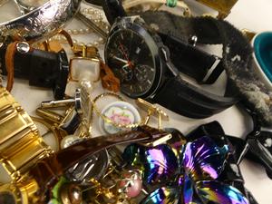 large lot of costume jewelry, quartz watches, cuff links, etc.