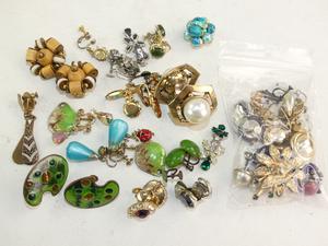 lot of vintage costume earrings, including reinad wooden earrings, some singles