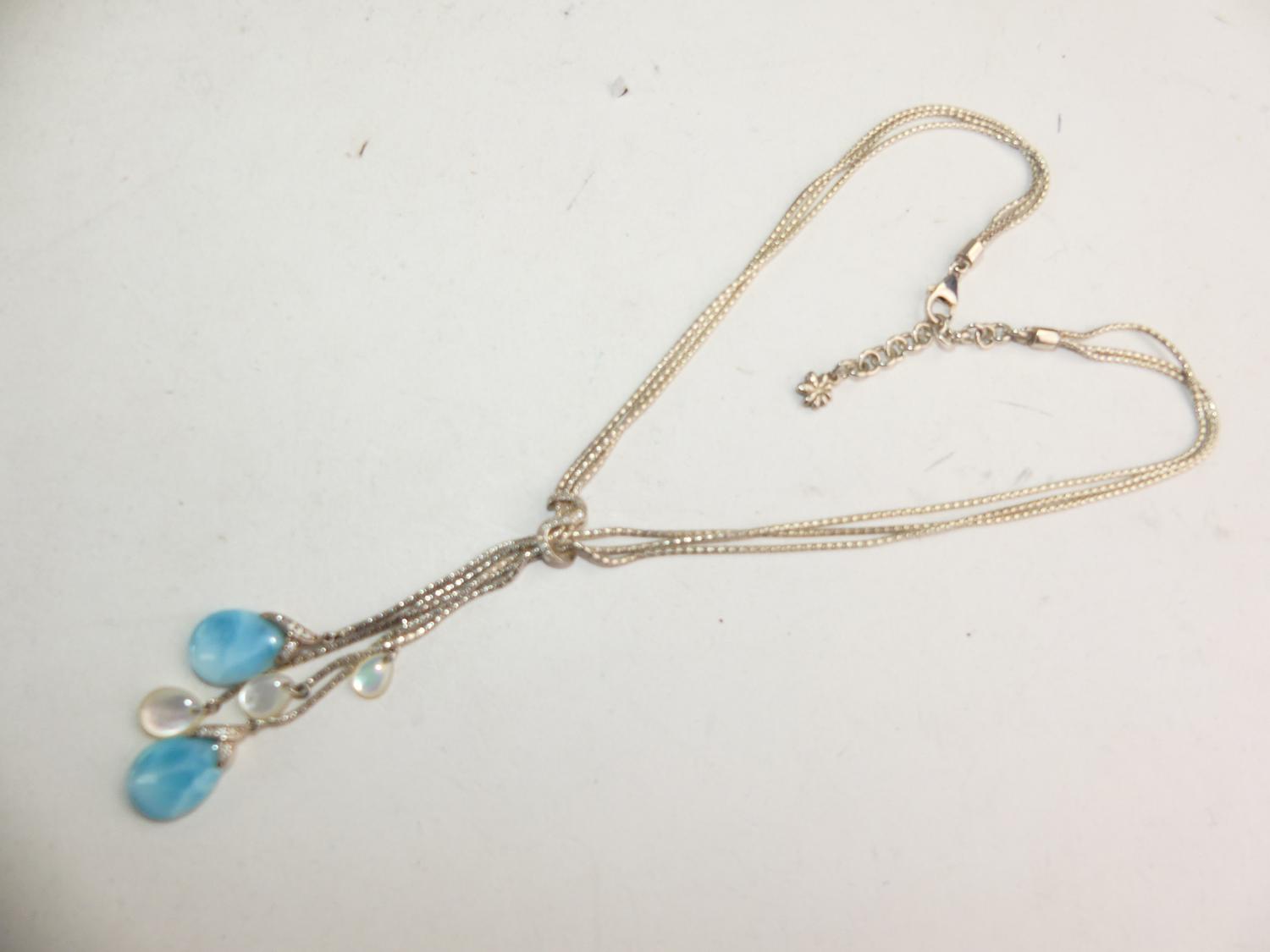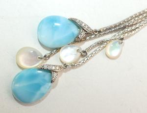 sterling silver multichain mother of pearl pendants necklace, length 16"