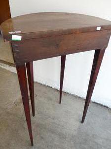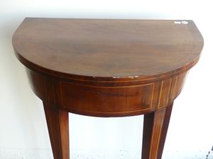 19th century inlaid mahogany demi lune table, 31" x 20 1/2" x 13 1/2"