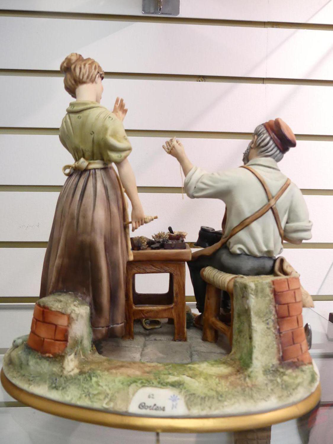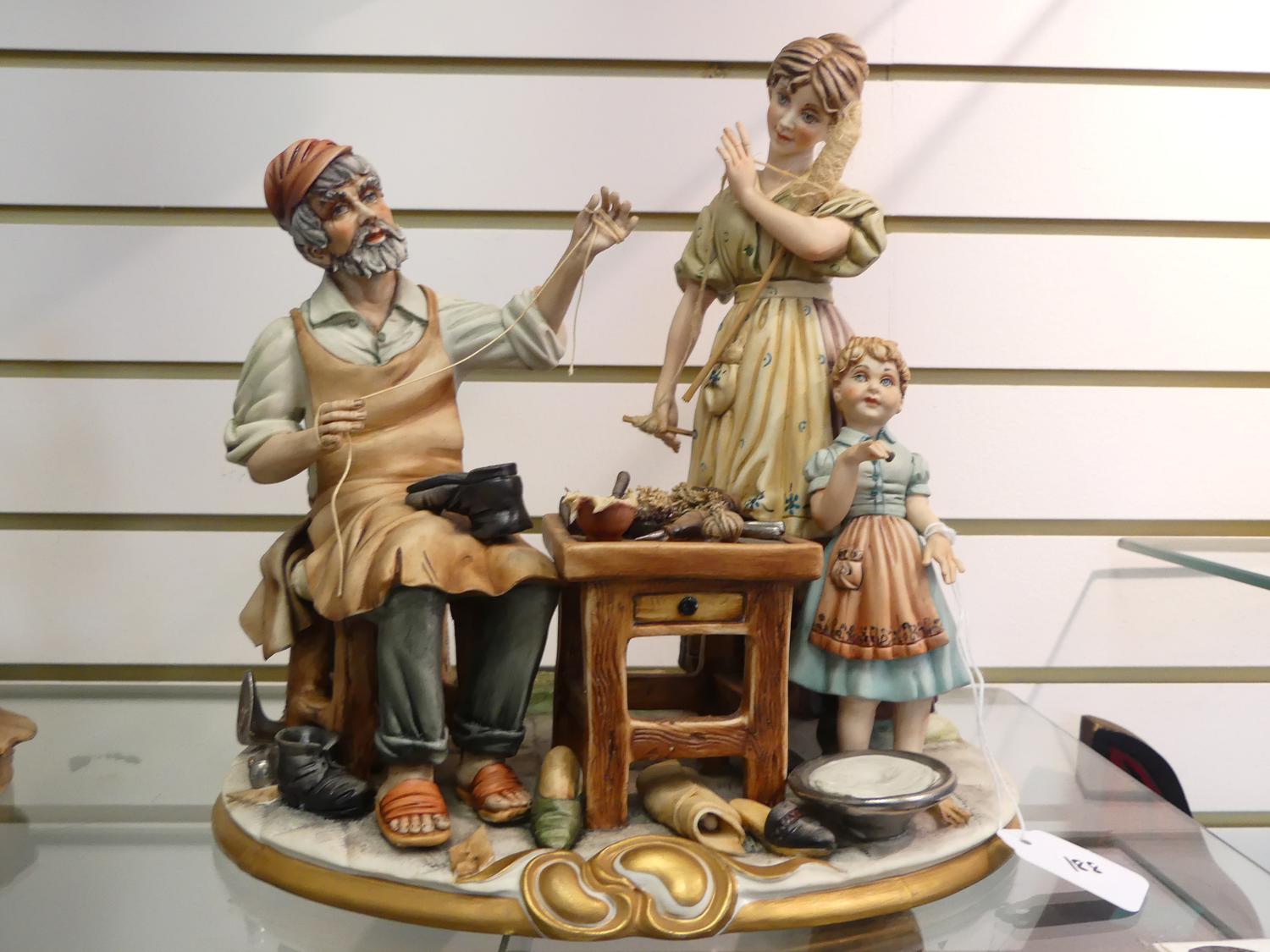 capodimonte porcelain figural group "shoe maker's family" by cortese, 11" x 10" x 7"