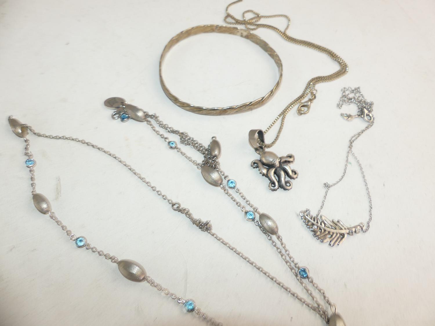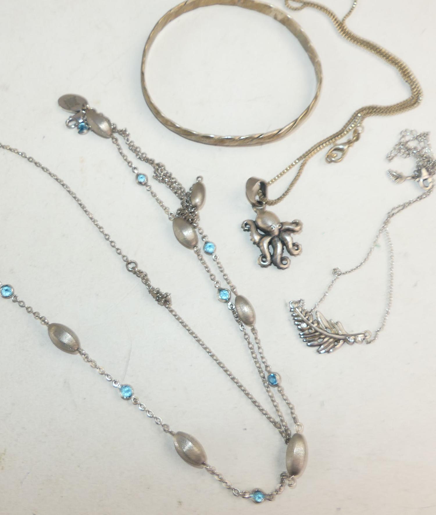 lot of sterling silver necklaces, bangle, w/a 42 grams