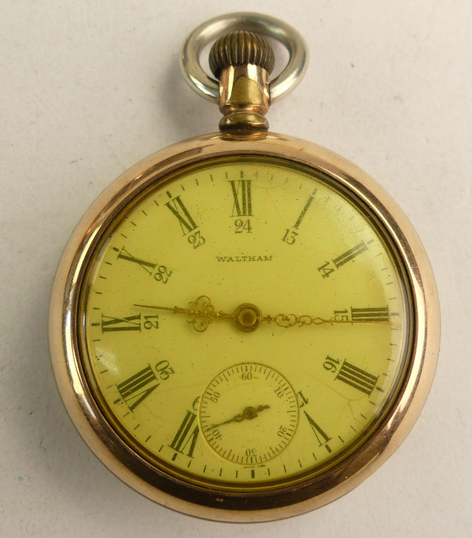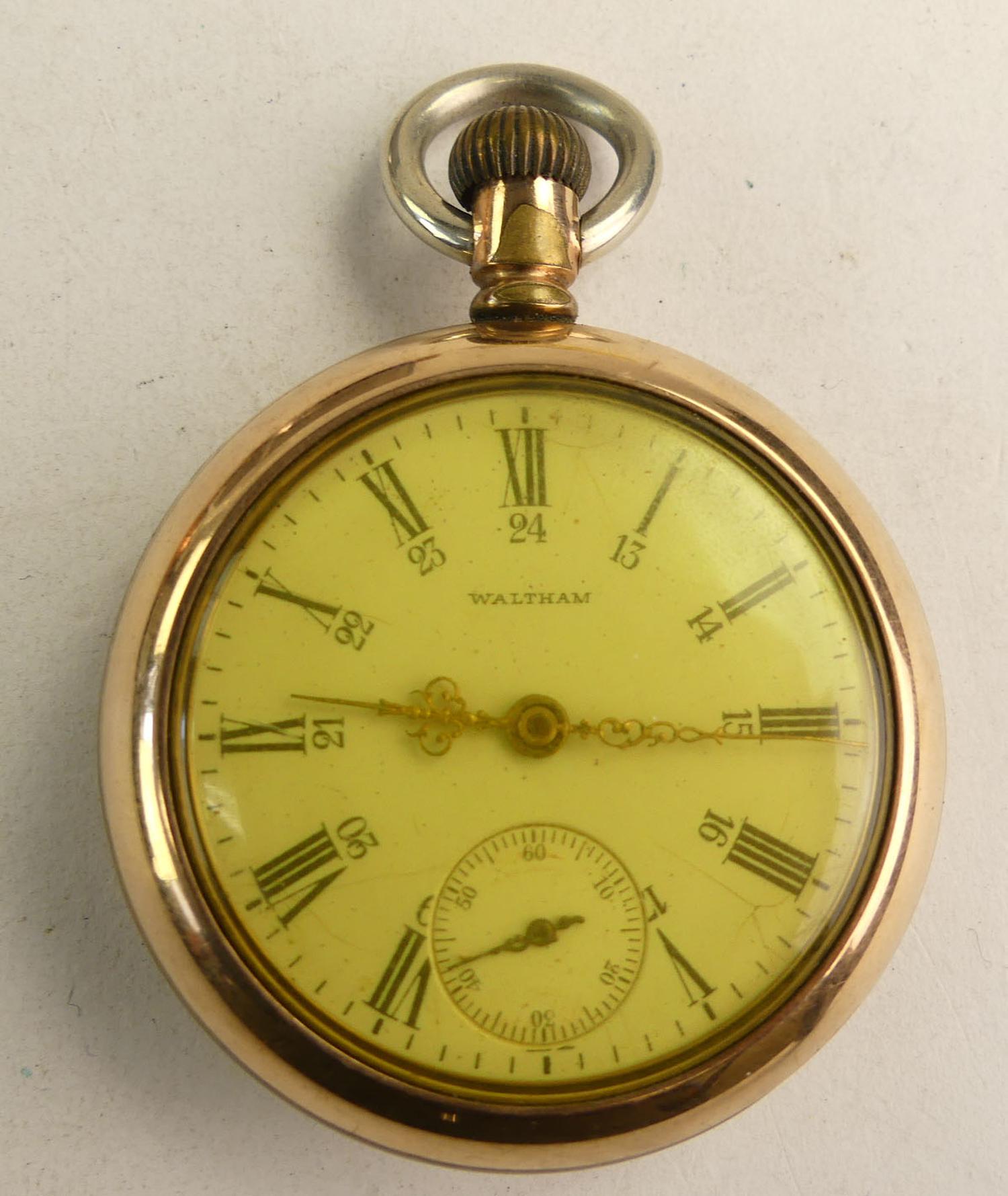waltham gold filled openfaced pocket watch, movement # 9995768