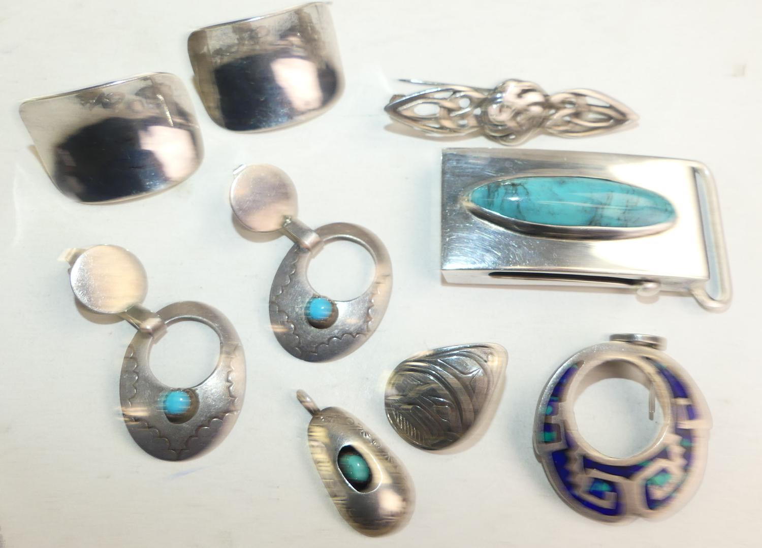 lot of navajo and mexican sterling silver items