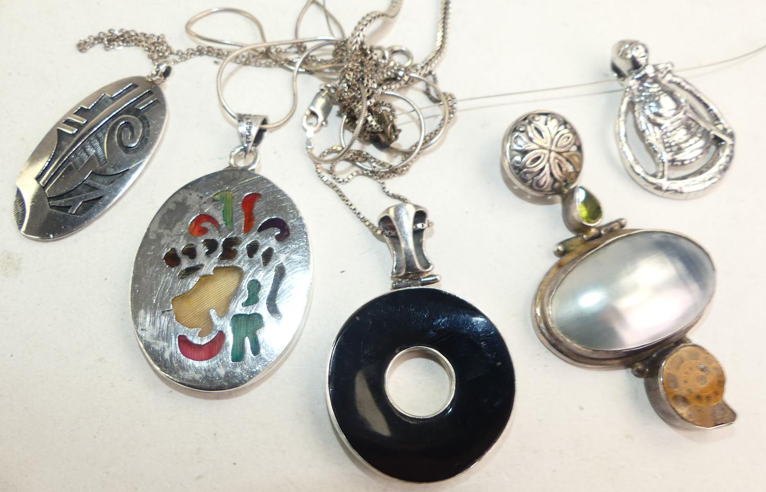 5 sterling silver pendant necklaces, weighing approx 73 grams