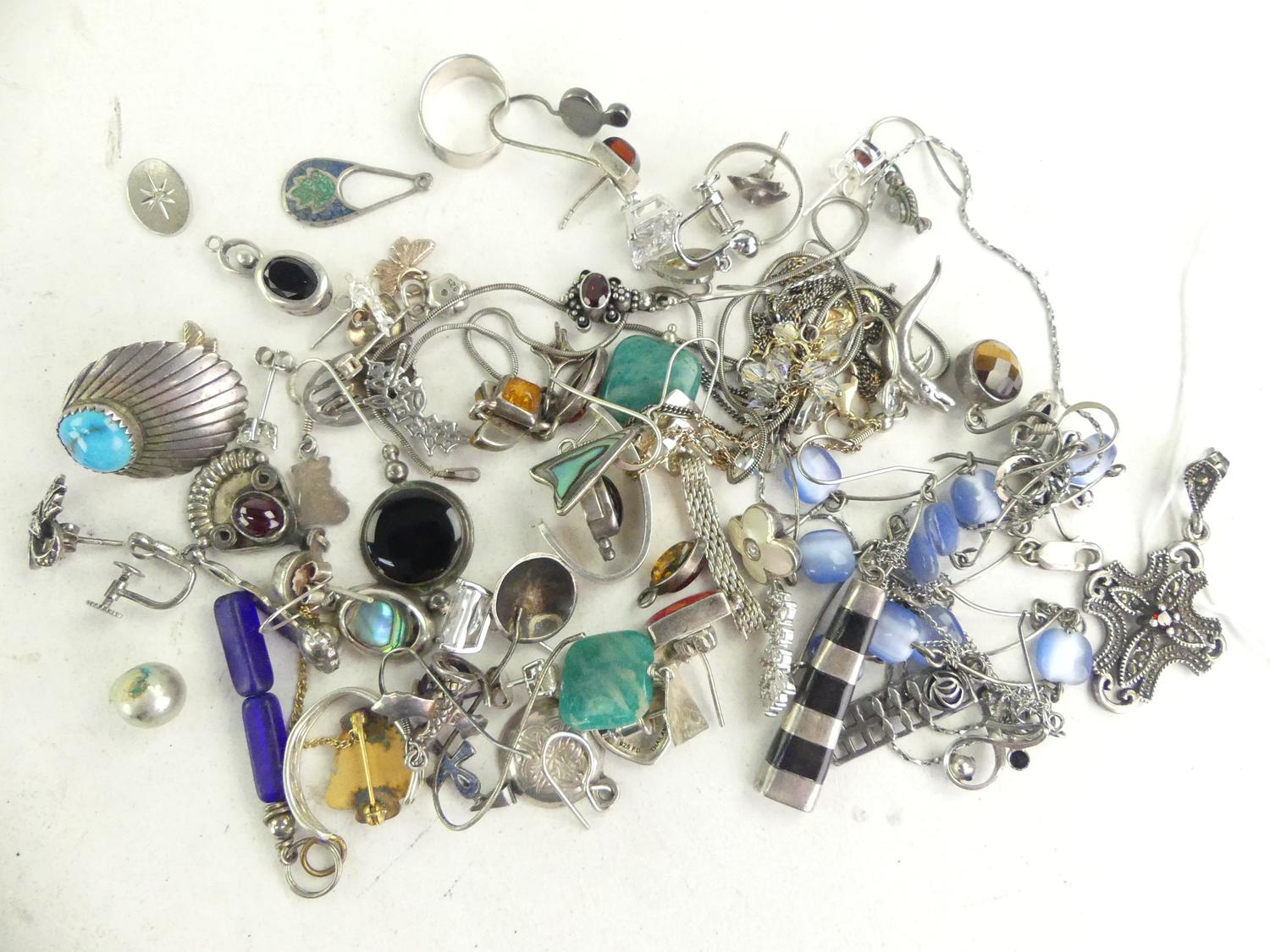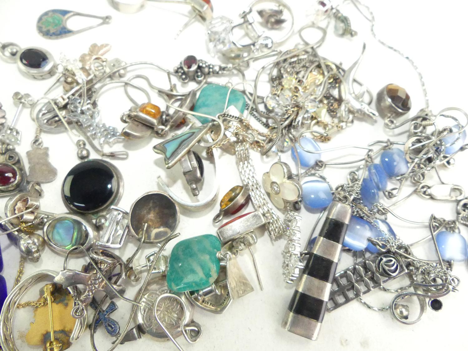 lot of sterling silver gemstone jewelery, weighing approx 112 grams