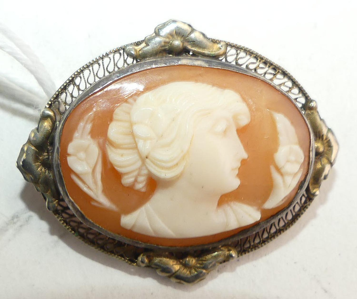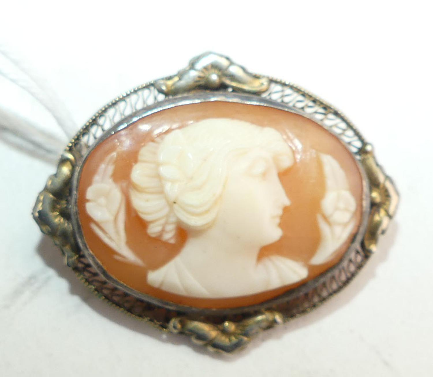 victorian sterling silver vermeil shell cameo brooch pendant