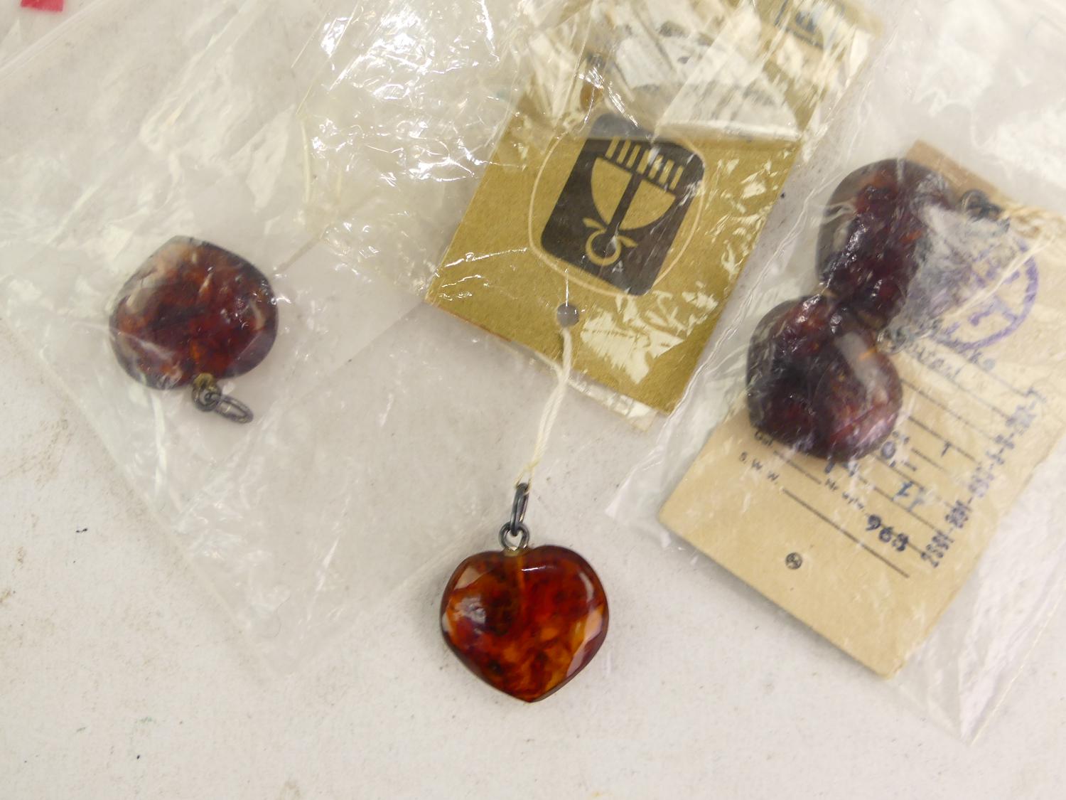 4 heart amber pendants, poland