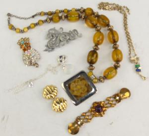 vintage paolo gucci sweater clip, jj dragon pin, juicy couture and vendome costume