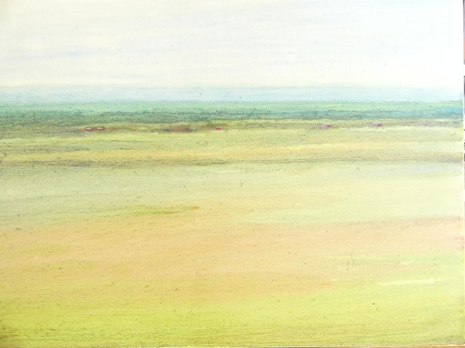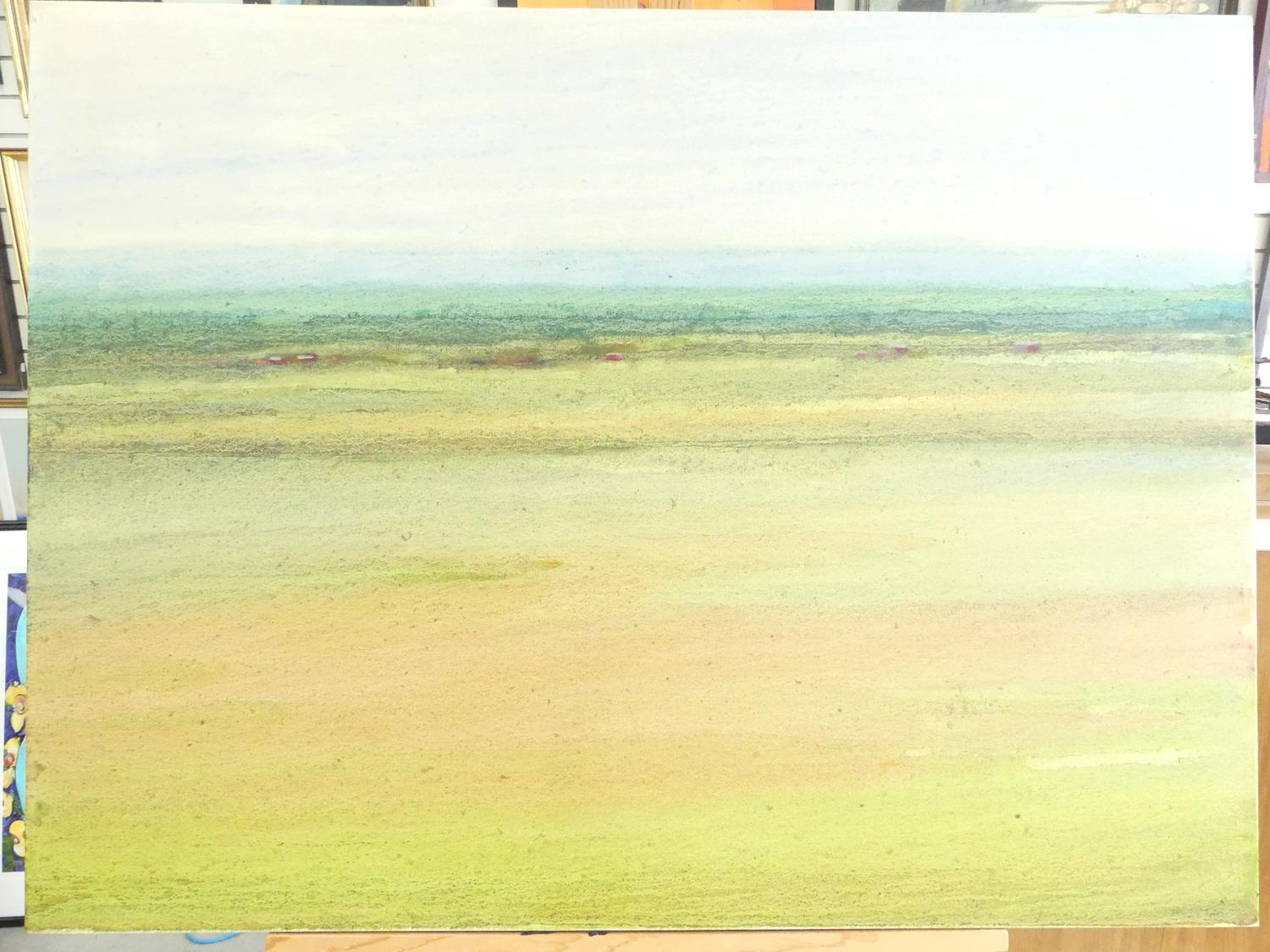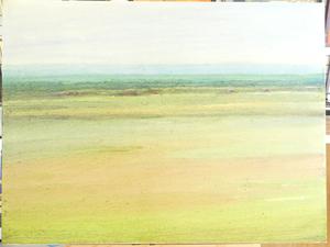 indistinctly signed oil on canvas, 30" x 40", "valley farms fields"