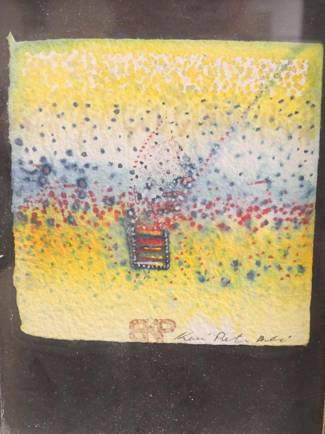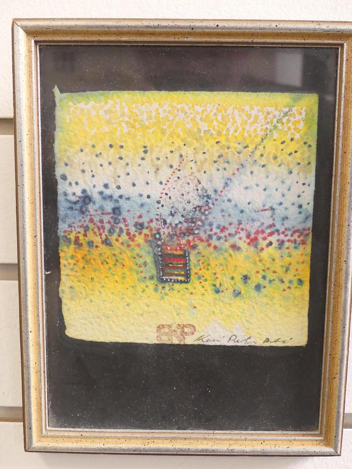 indistinctly signed watercolour, 5" x 4 1/2", "abstract"