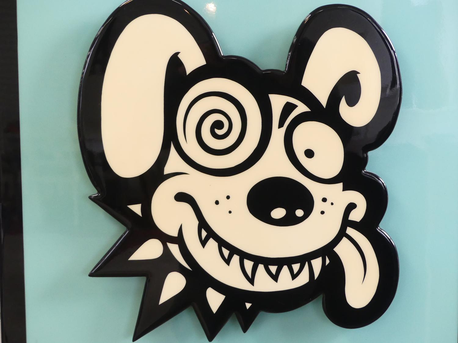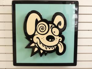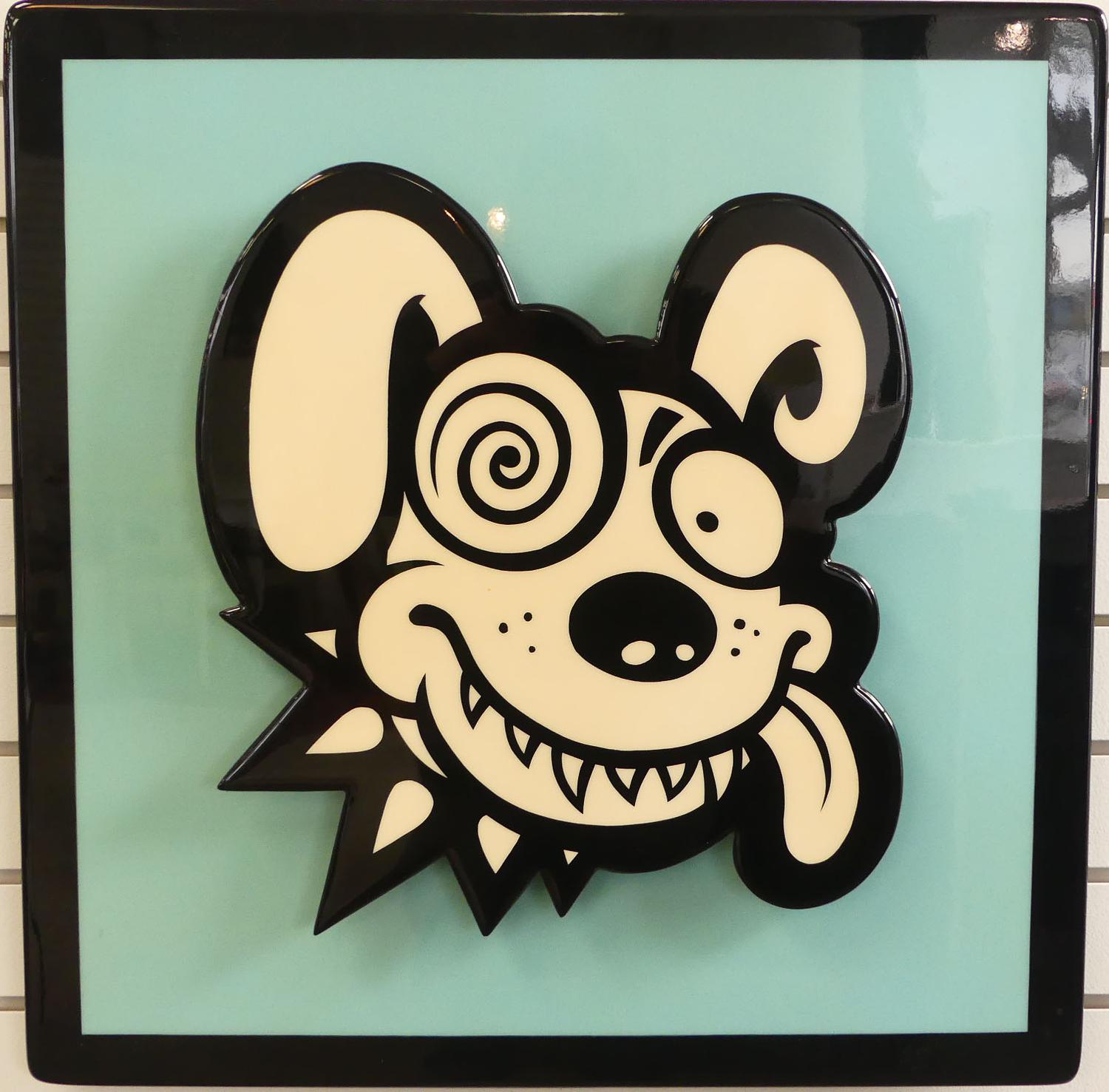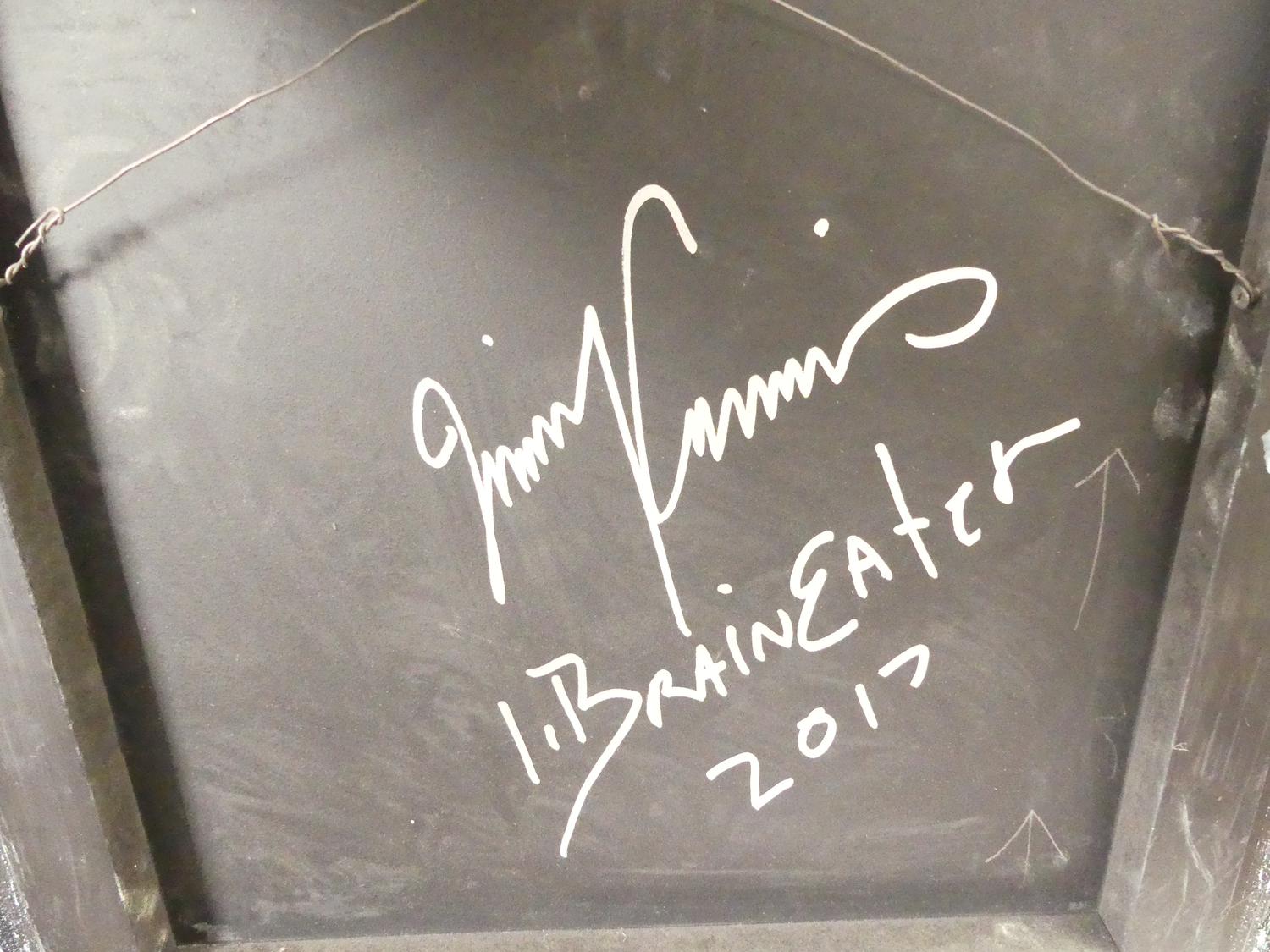 jim cummins (b.1955), 3d acrylis and resin on board, 24 1/2" x 24 1/2", "dizzy-eyed brain eater"