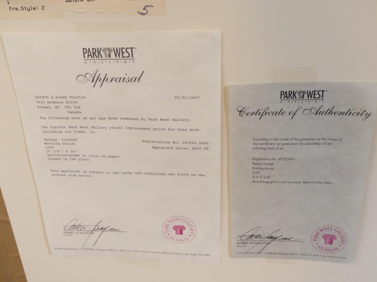 itzchak tarkey, serigraph, 16" x 24", "morning social"