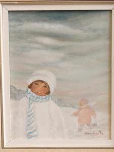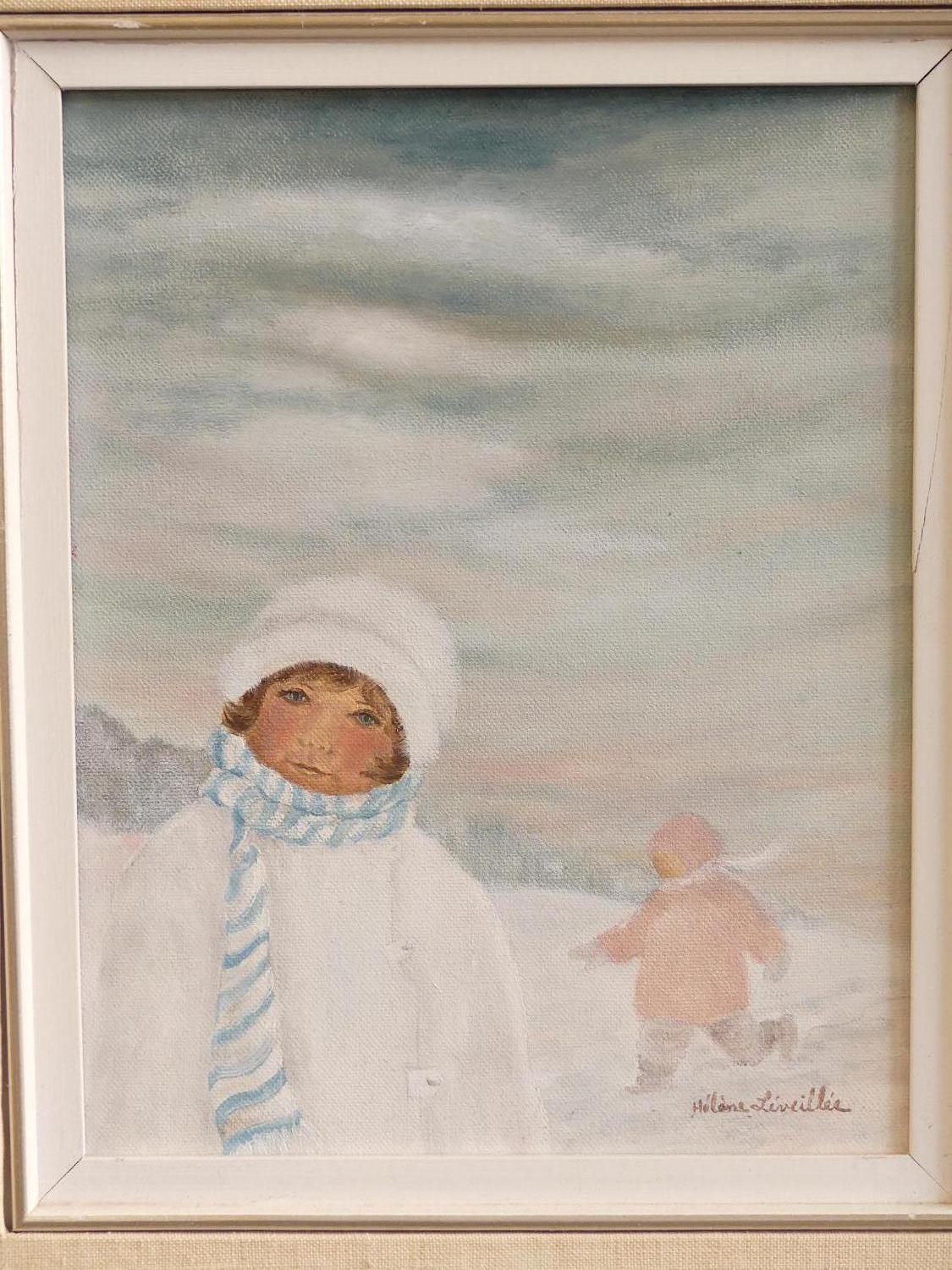 helene leveillee, (b. 1932) oil on canvas, 10" x 8" "belle neige"