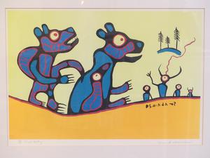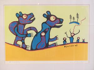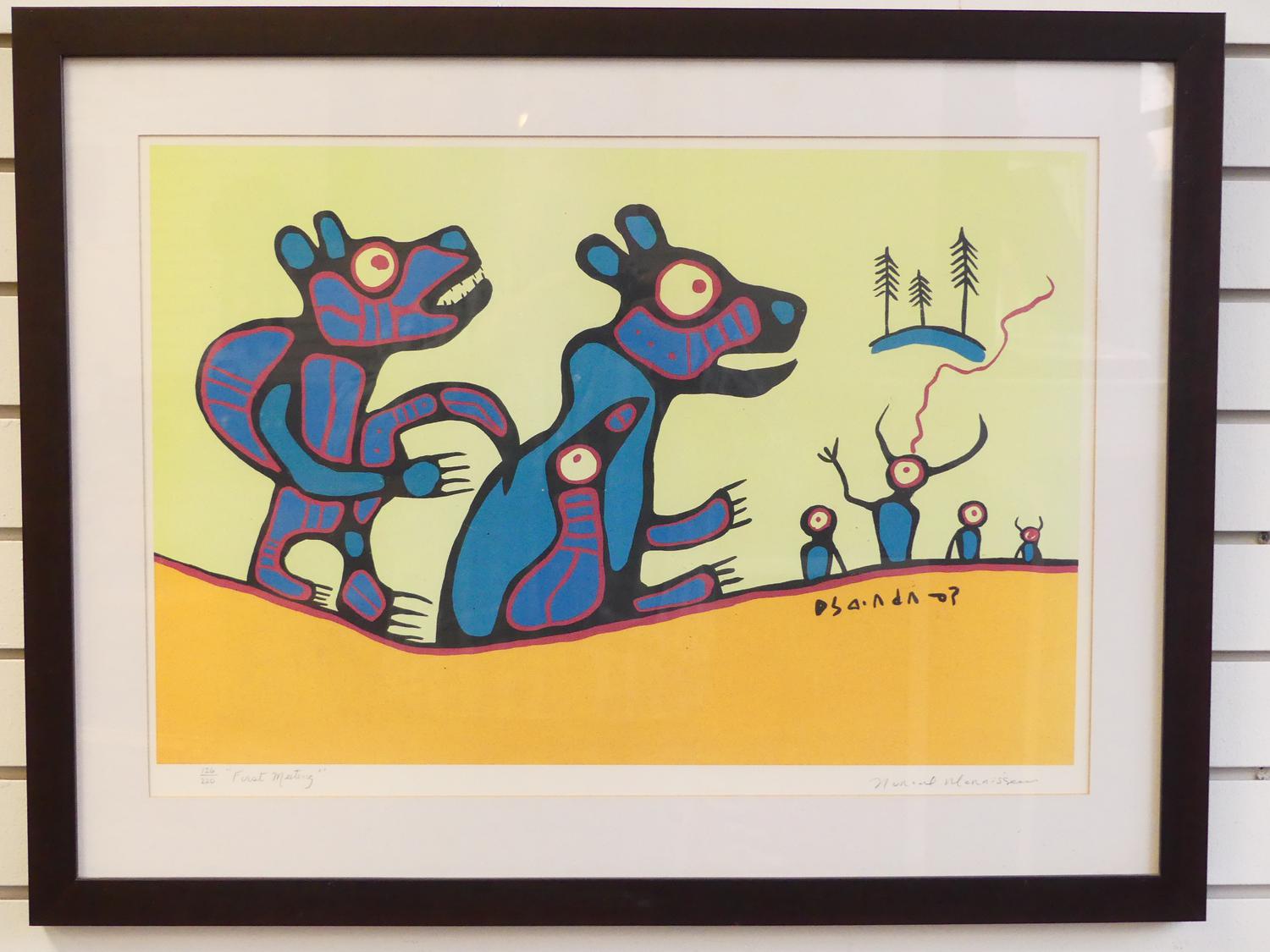 norval morriseau (1931-2007), silkscreen #126/220, 15" x 22 1/2", "first meeting"