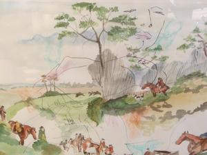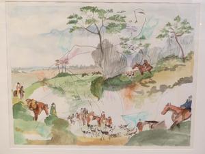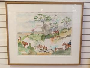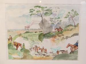 monique mees, watercolour, 19" x 25", "fox hunting scene"