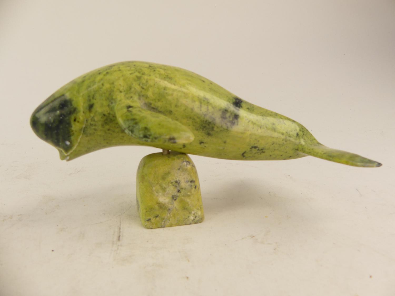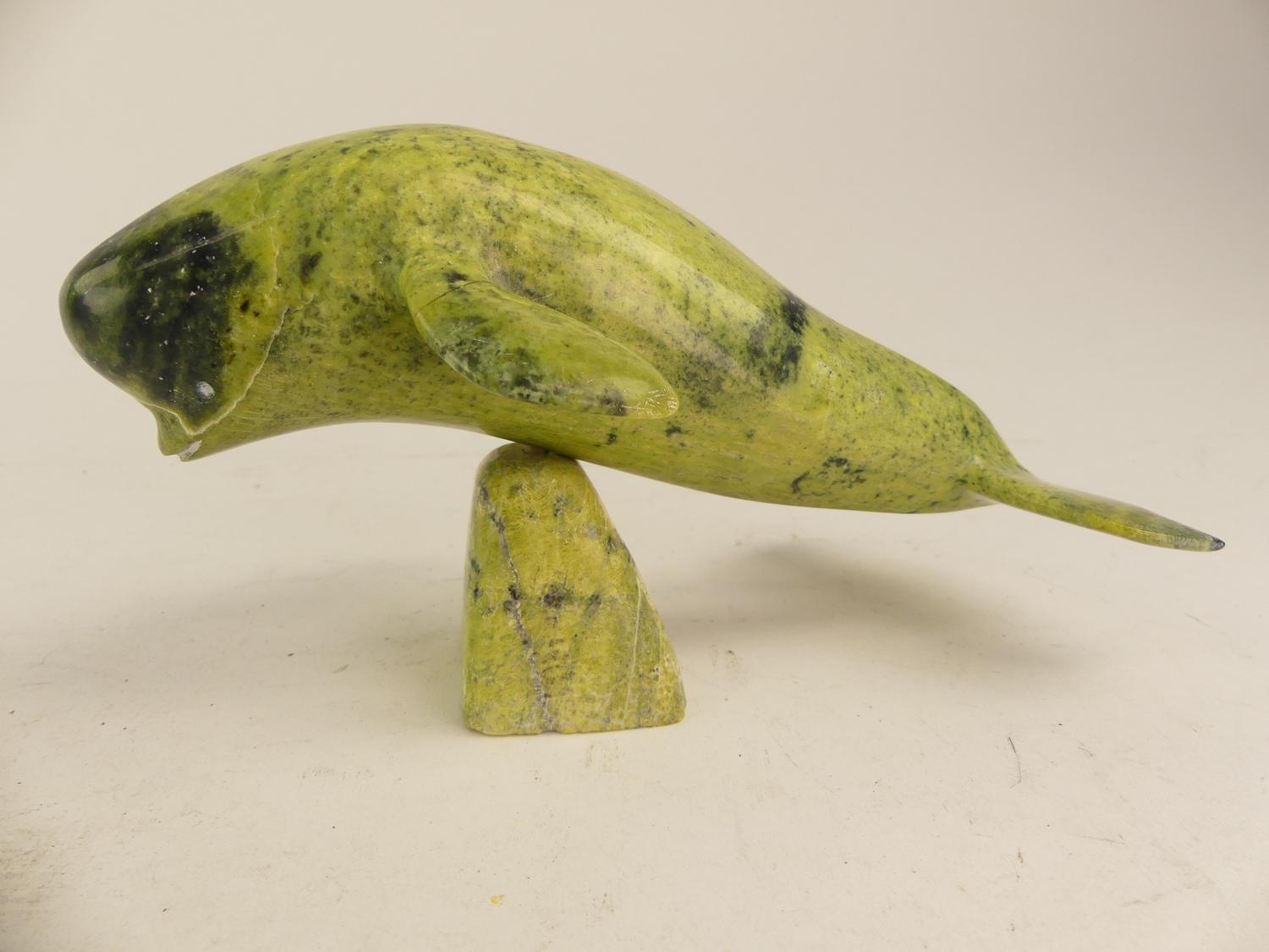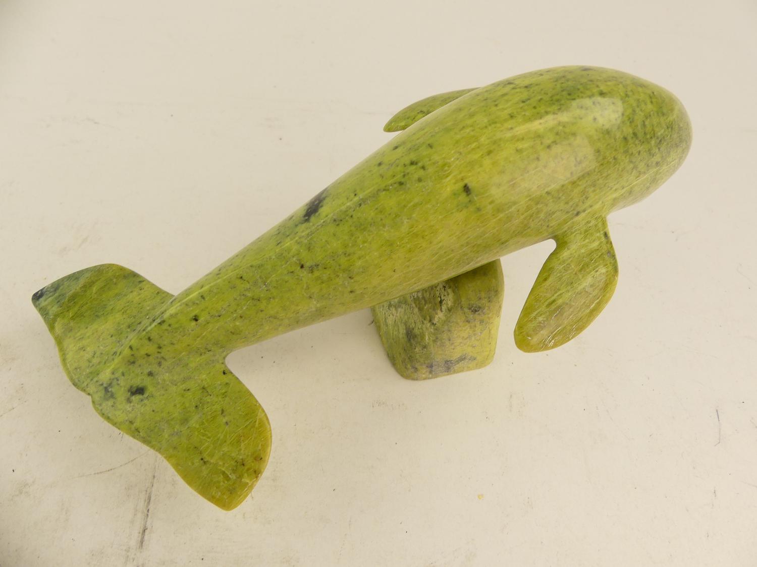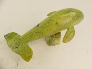 joe arlooktoo (b.1939), green stone beluga whale, length 8 1/2"