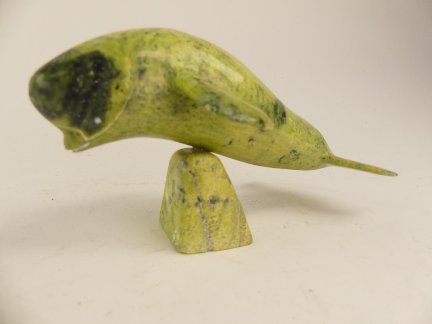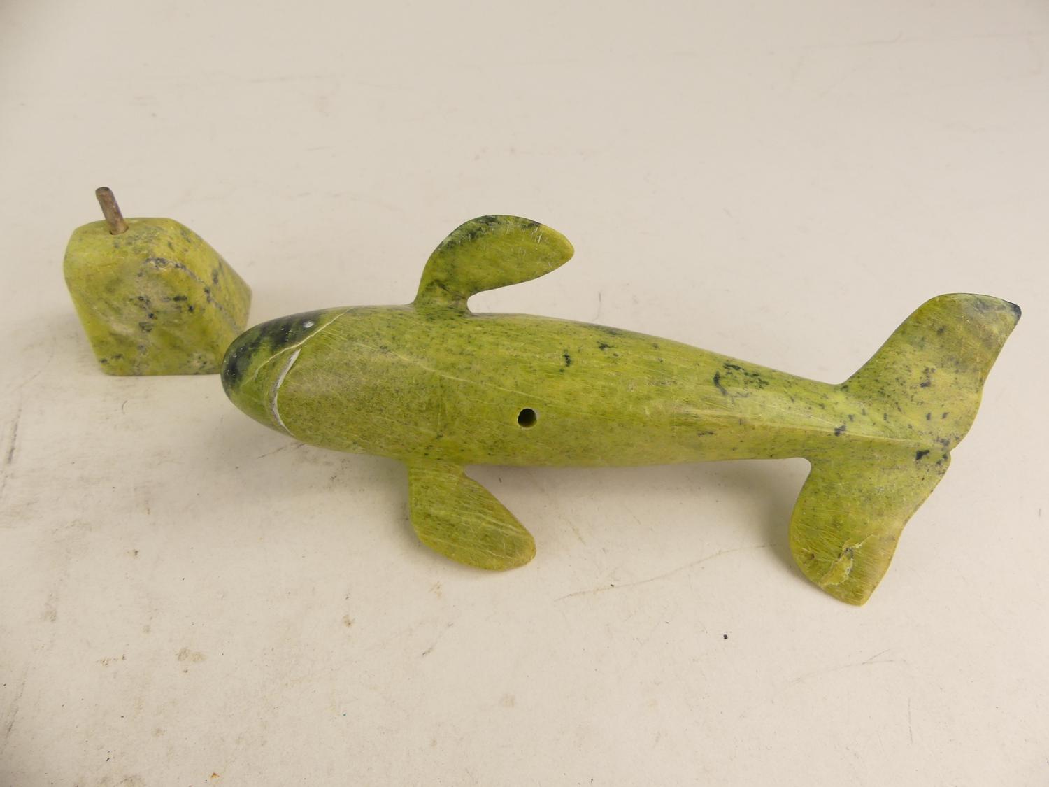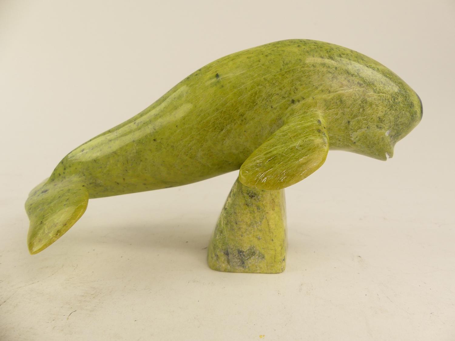 joe arlooktoo (b.1939), green stone beluga whale, length 8 1/2"