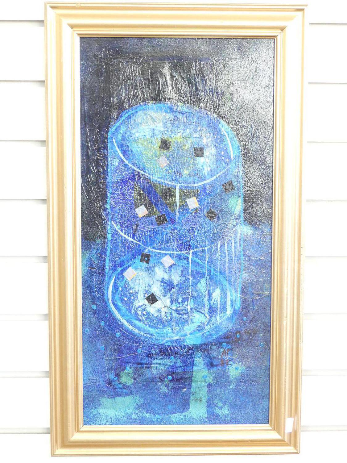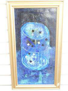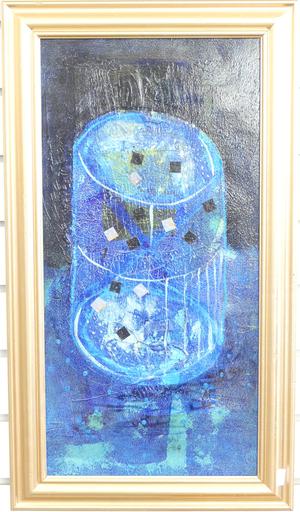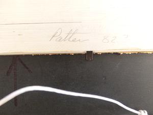 allen patten, dated 1982, oil on paper, 20" x 10", "model of the universe with dark matter"