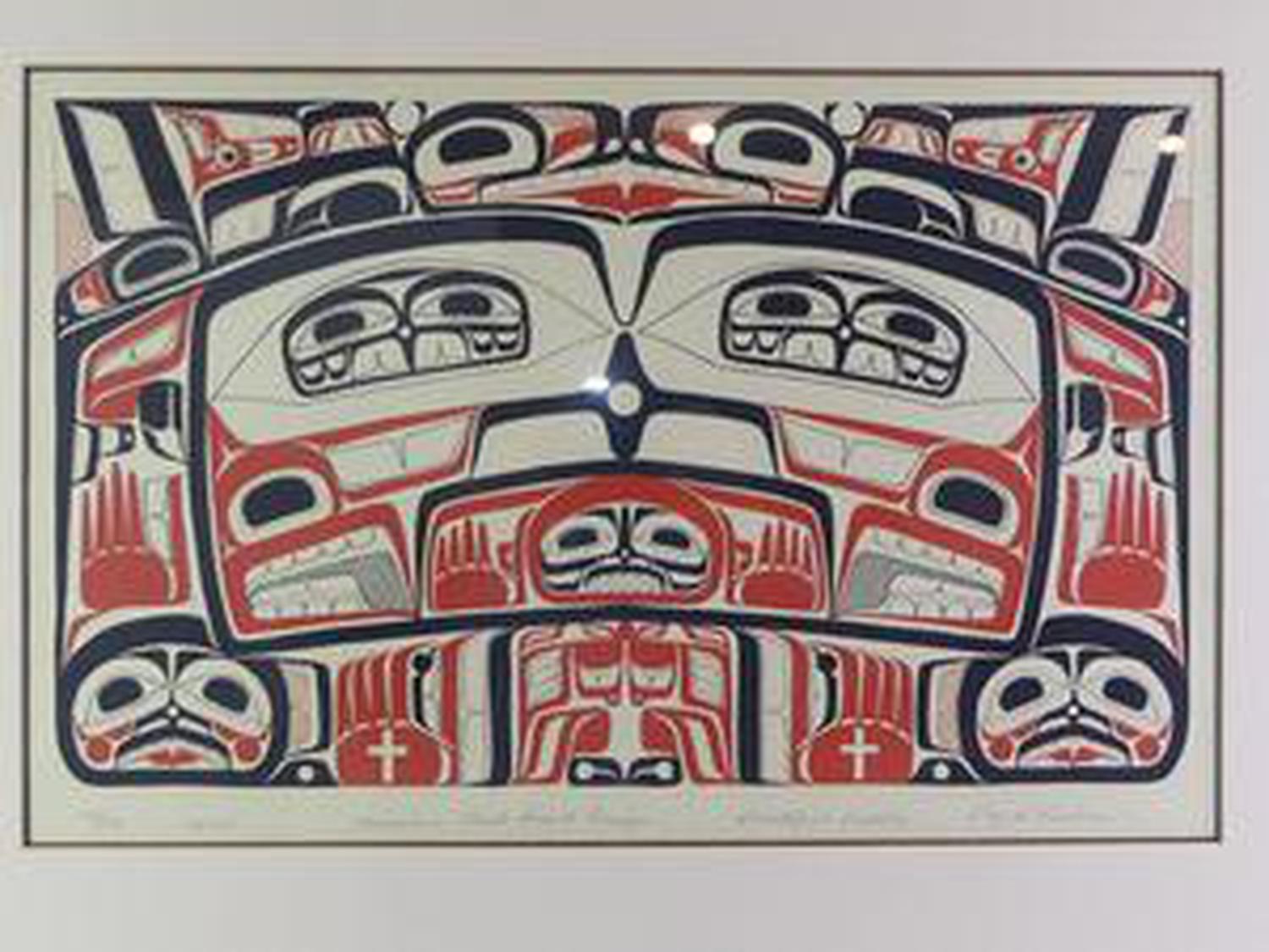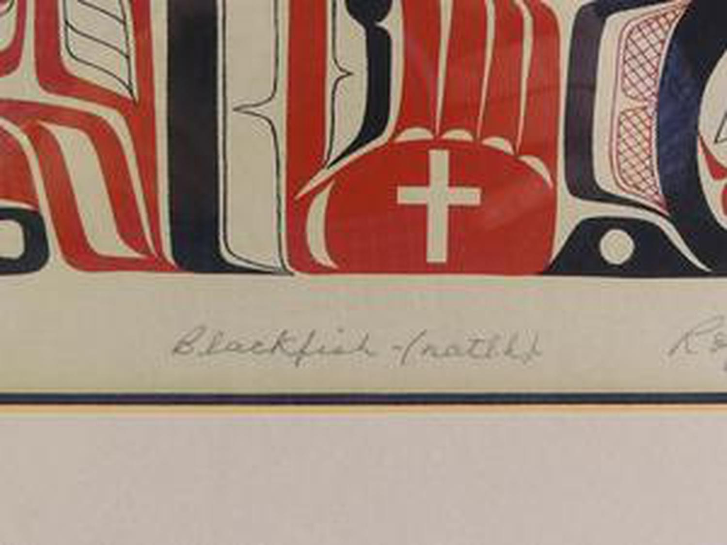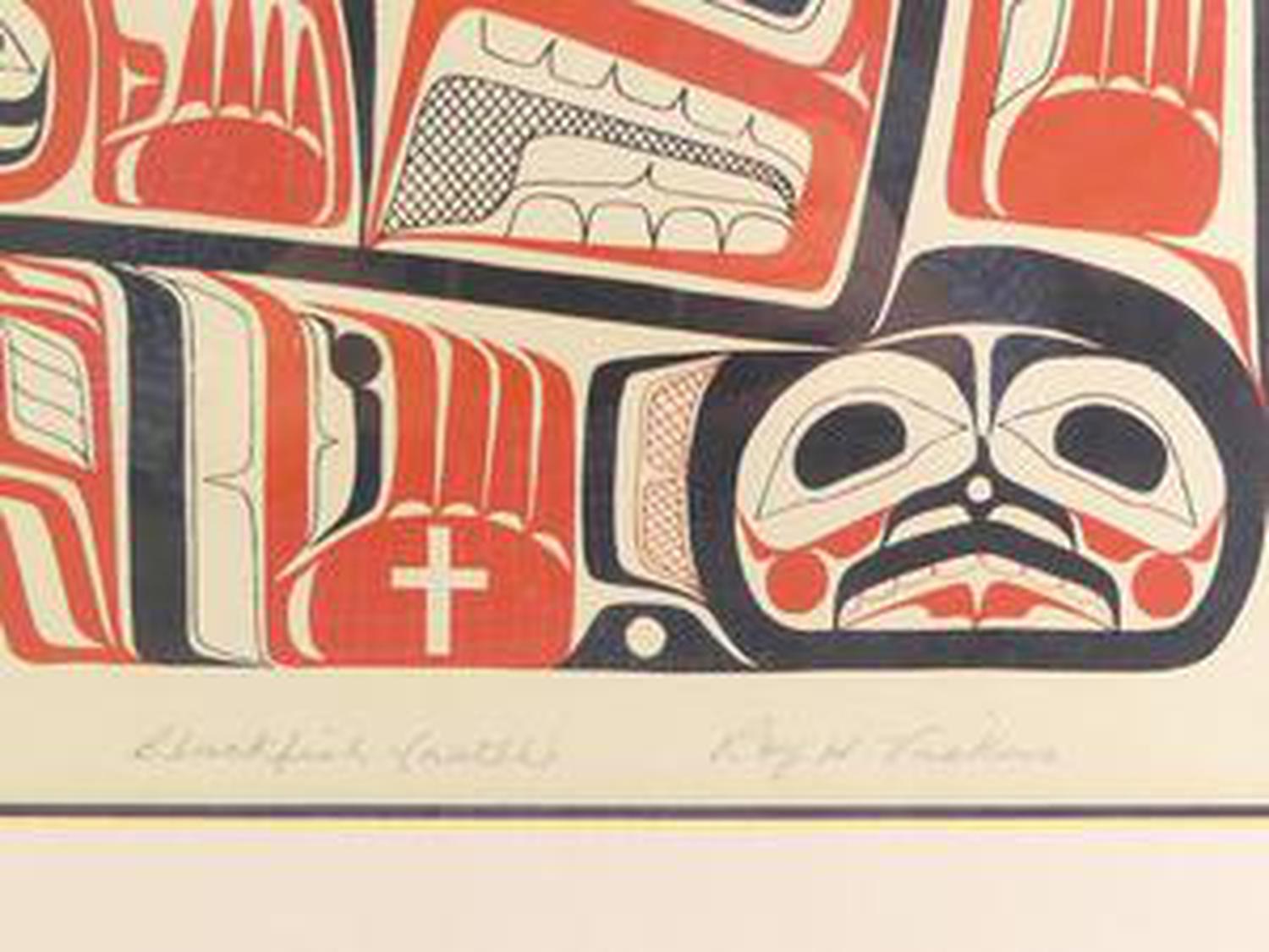 roy henry vickers (b.1946), silkscreen #108/150, dated 22/1/75, 13 1/2" x 20 1/2", "tsimsian chest front design - blackfish"