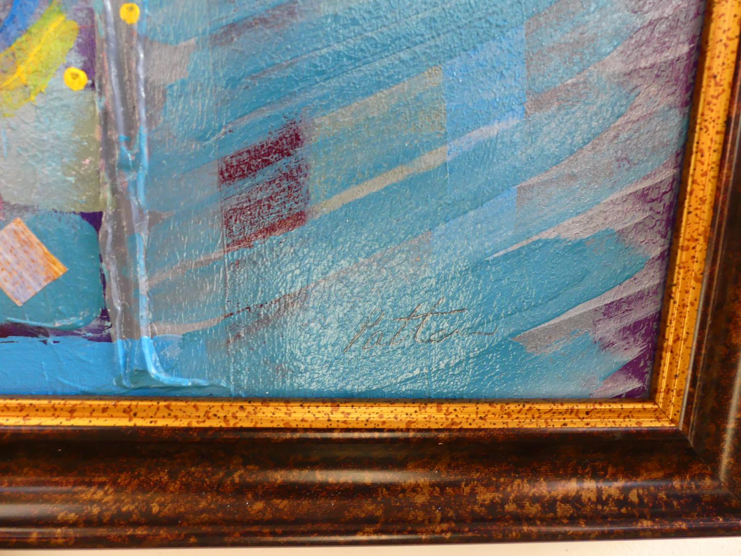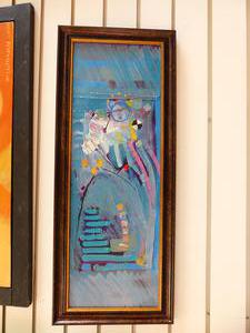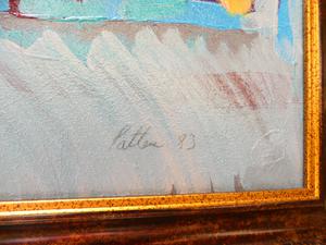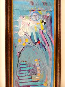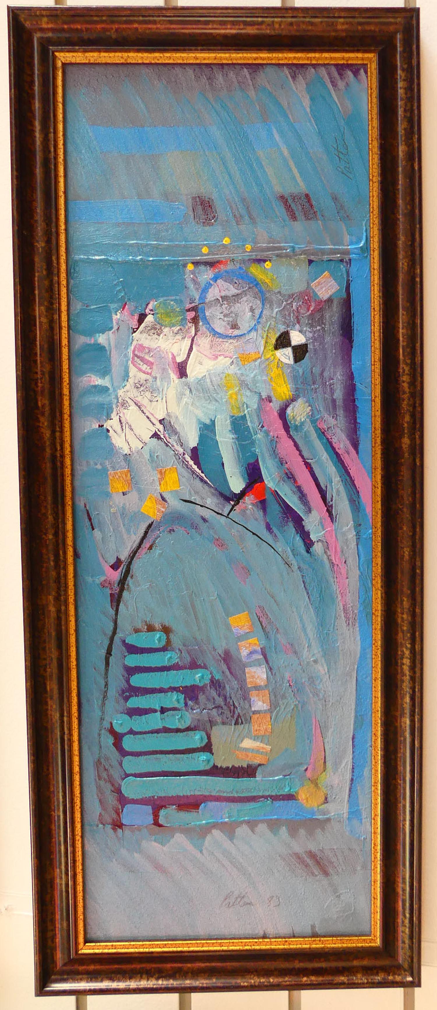 allen patten, dated 1983, oil on board, 21" x 7 1/2", "abstarct"