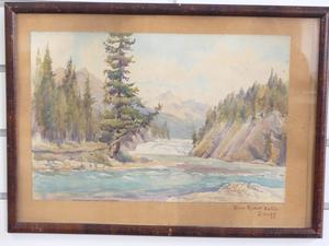 early 20th century canadian school, watercolor, 8" x 11 3/4/", "bow river falls, ab"