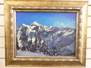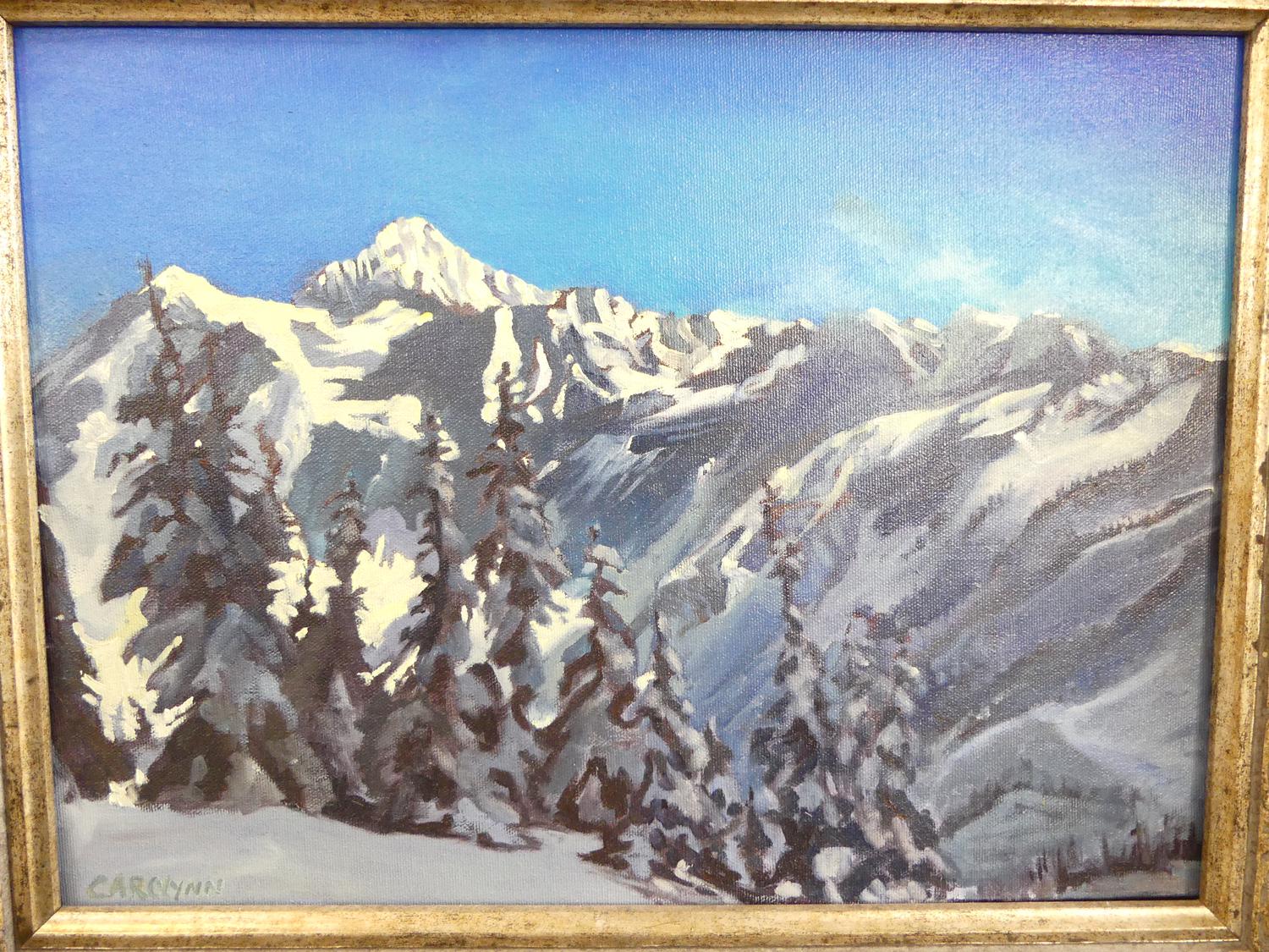 oil on canvas signed carolynn, 12" x 16", "winter mountain landscape"