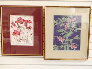 two indistinctly signed framed prints, "floral studies", biggest 20" x 17"