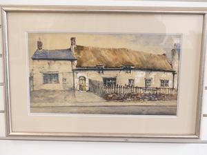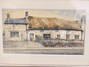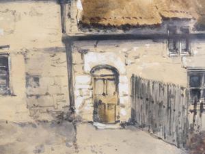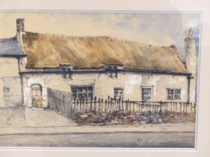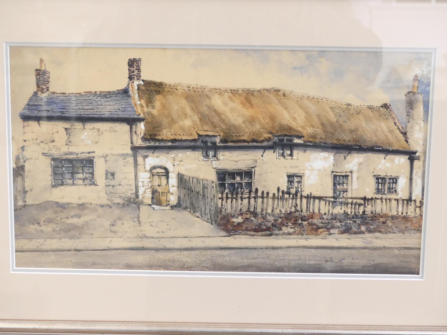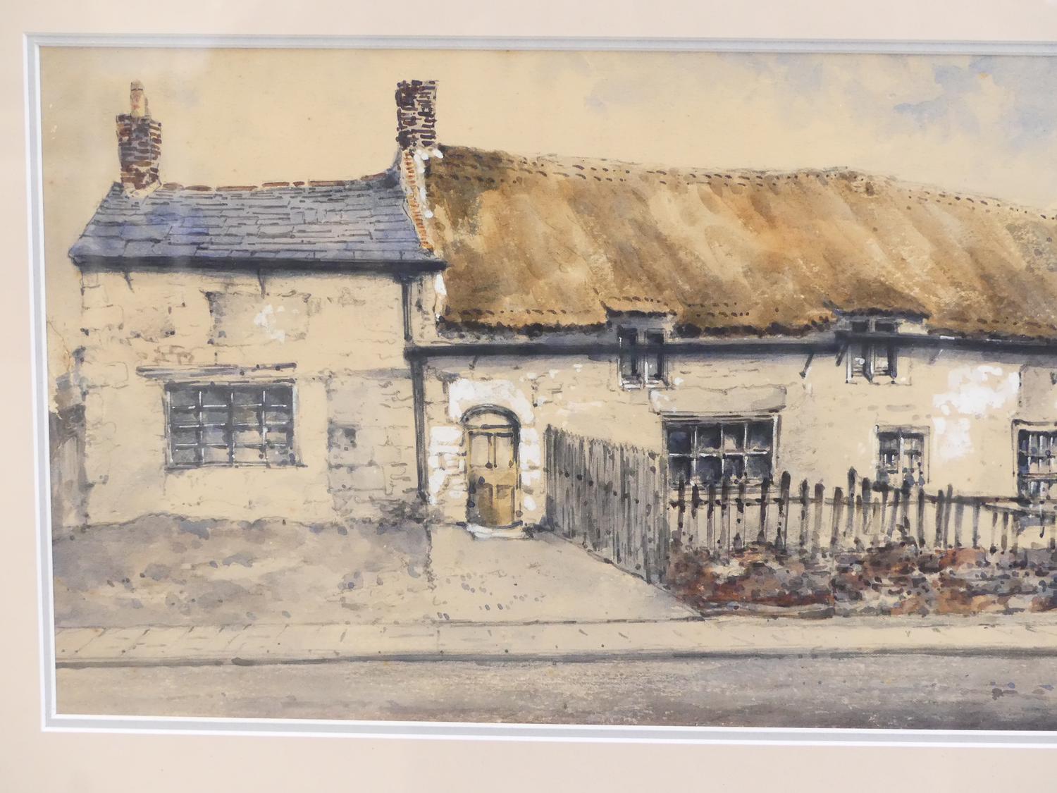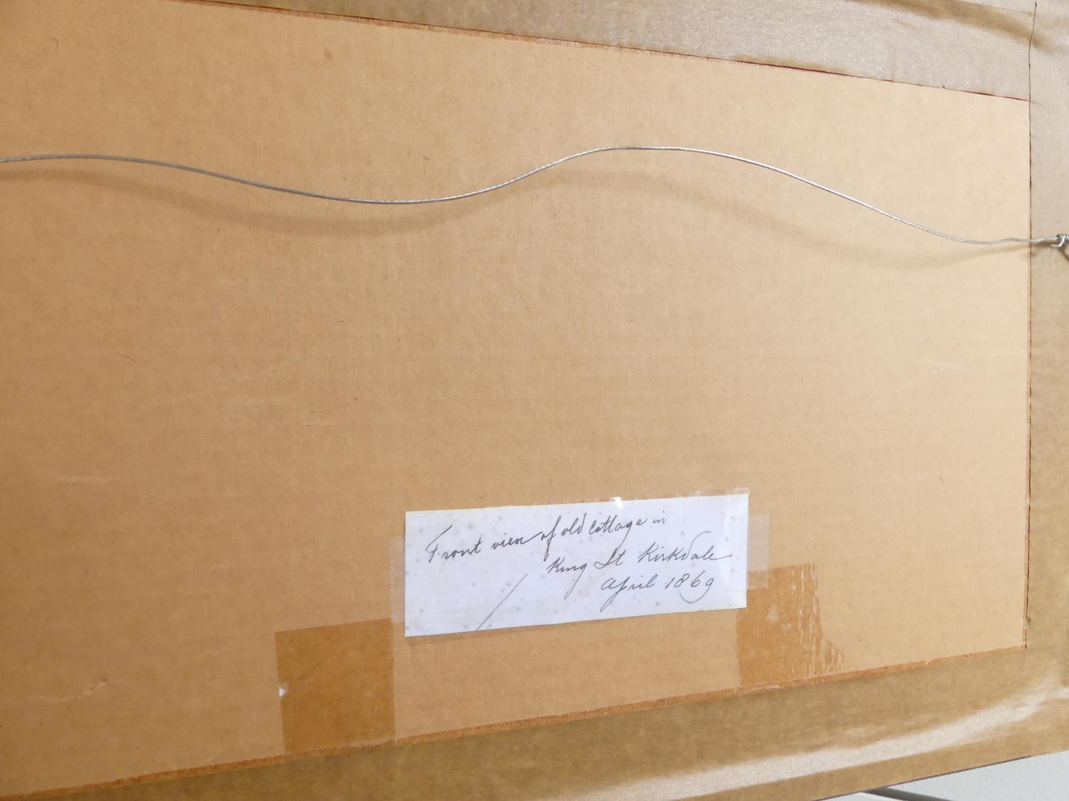 19th century watercolour circa 1869, 8 1/2" x 15", "front view of old cottage, king street, kirkdale"