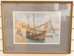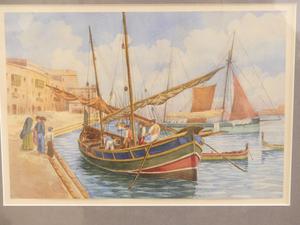early 20th century watercolour, 7 1/2" x 11", "harbour scene"