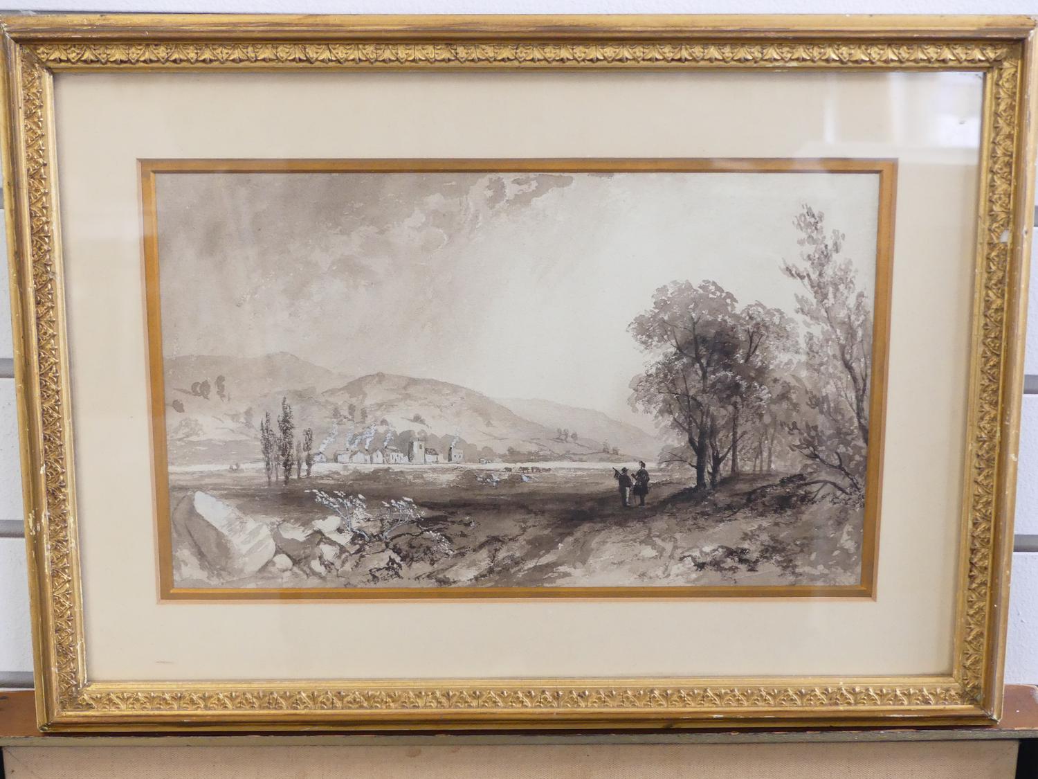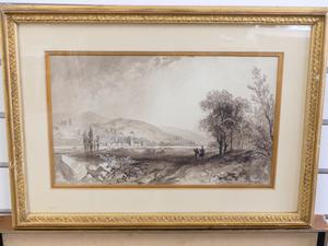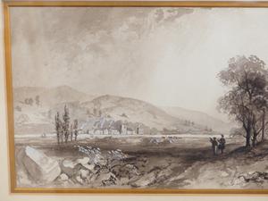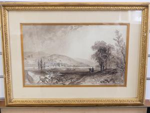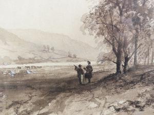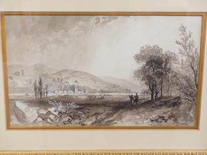 sushanna & marianne harvey, watercolour and gouache, 6 1/4" x 12", "landscape with figures"