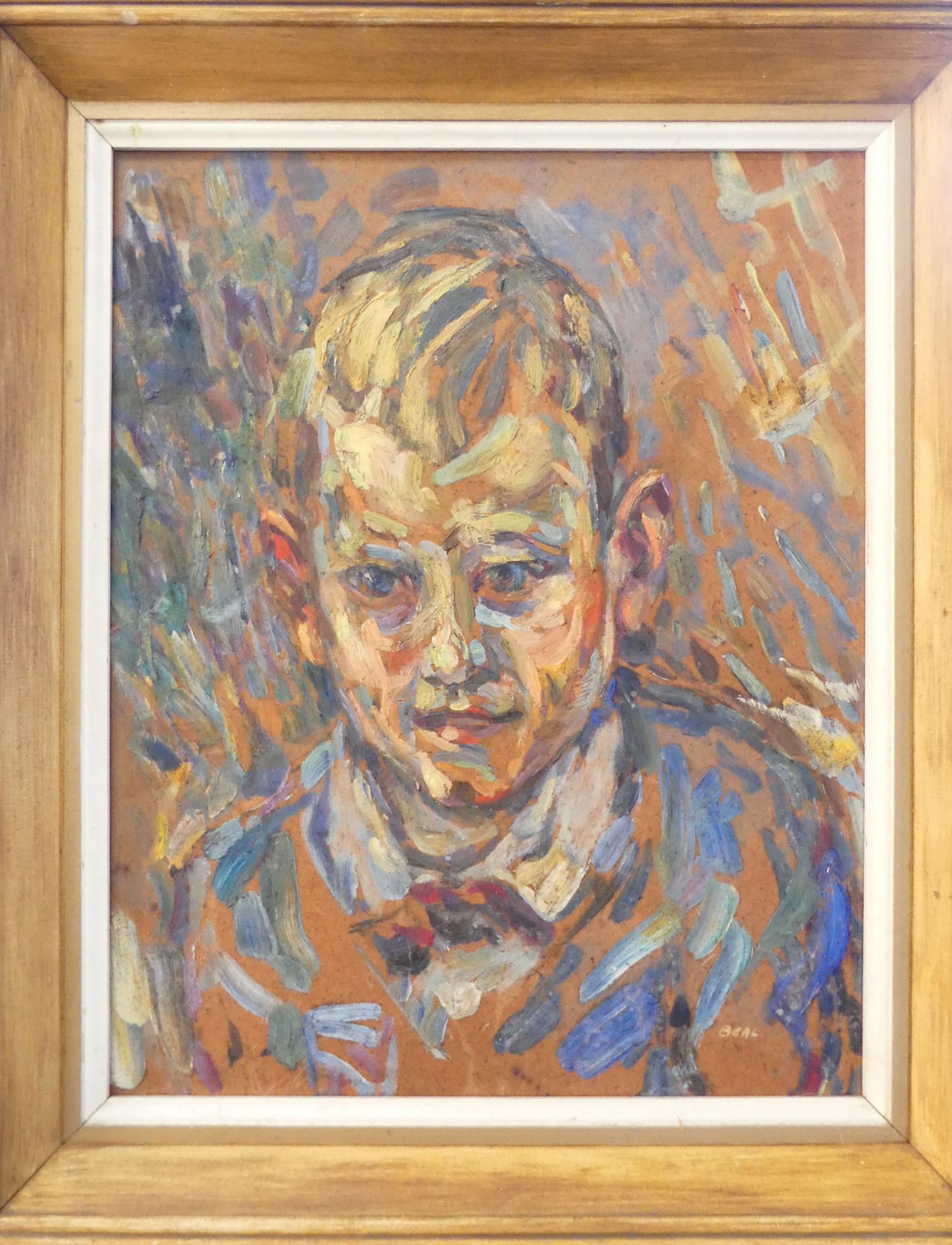 beal, oil on masonite, 20" x 16", "portrait of a boy"