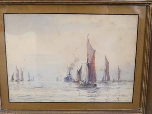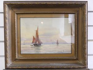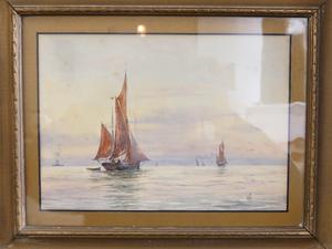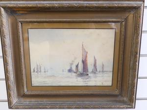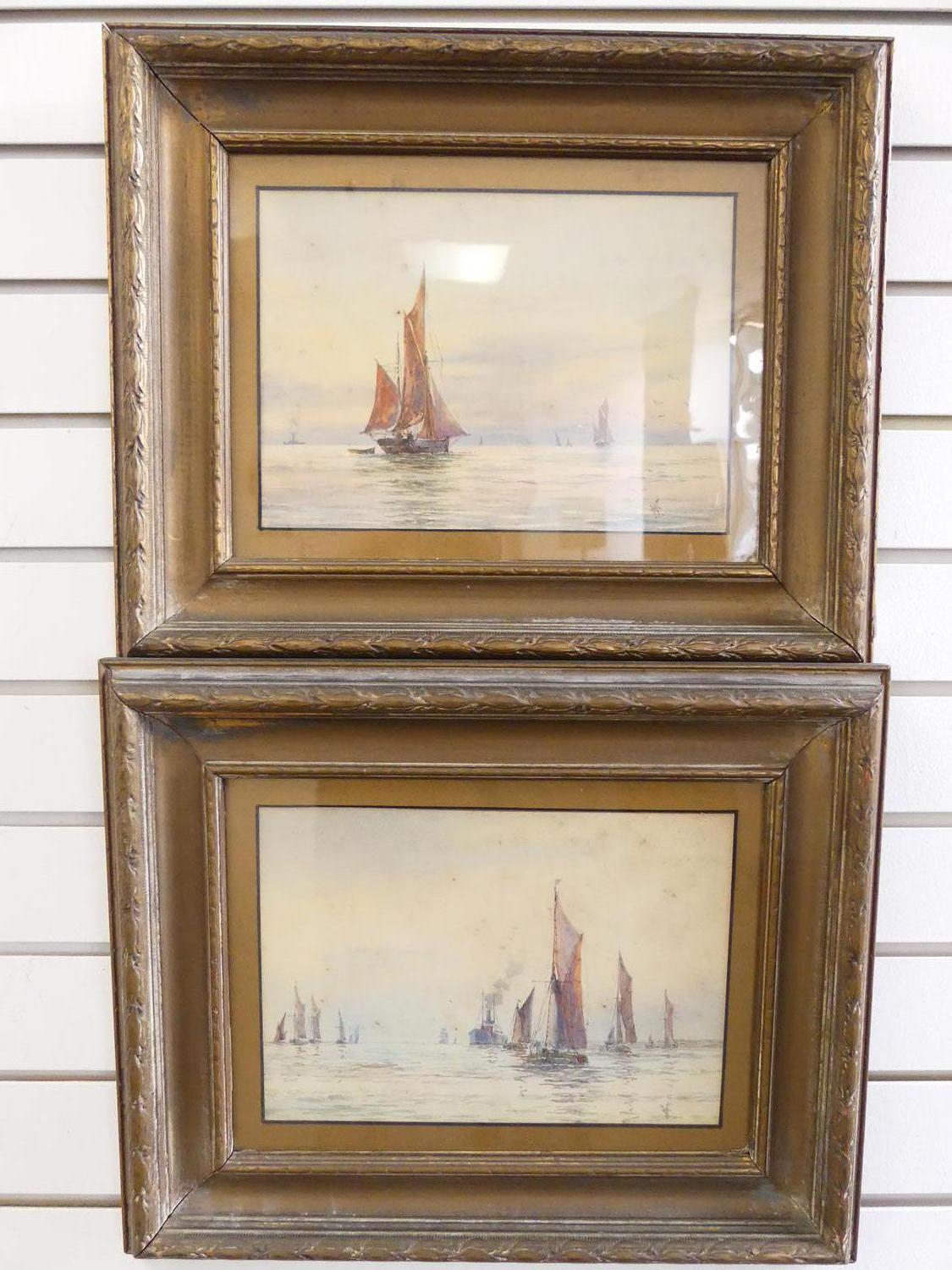 pair of antique gilt framed english watercolours signed with monogram, 7" x 10", "thames river scenes"