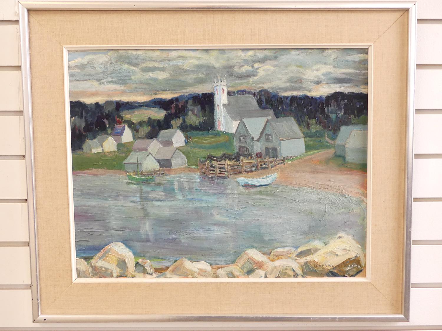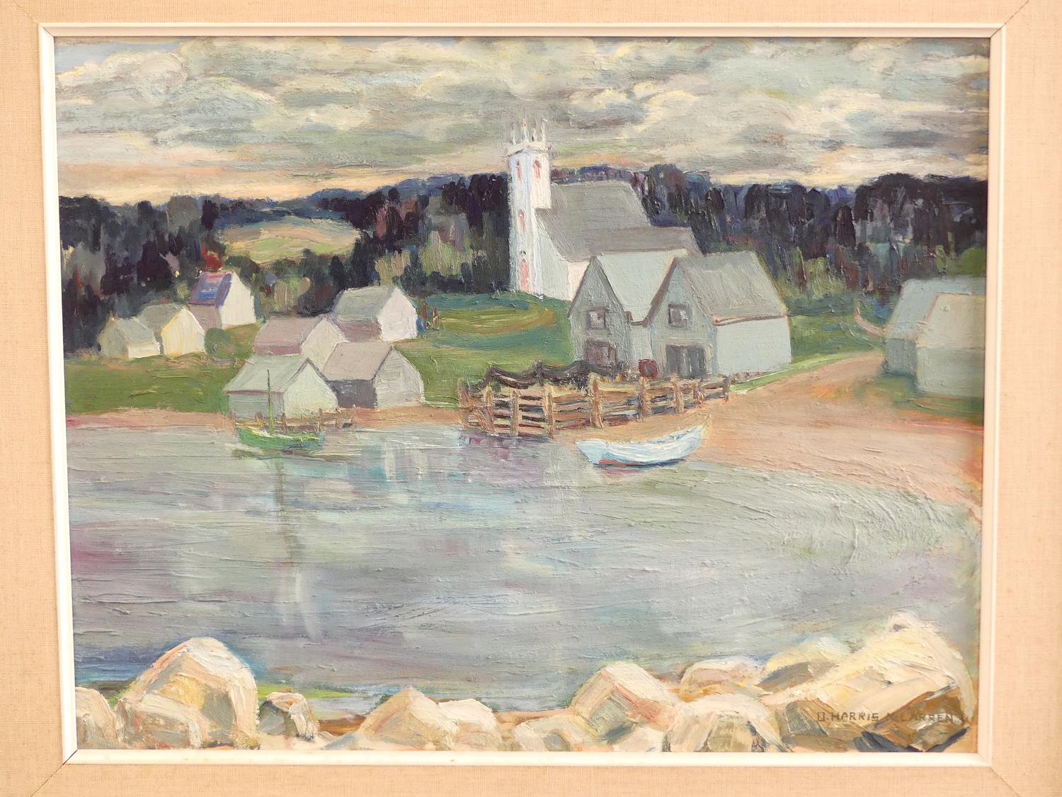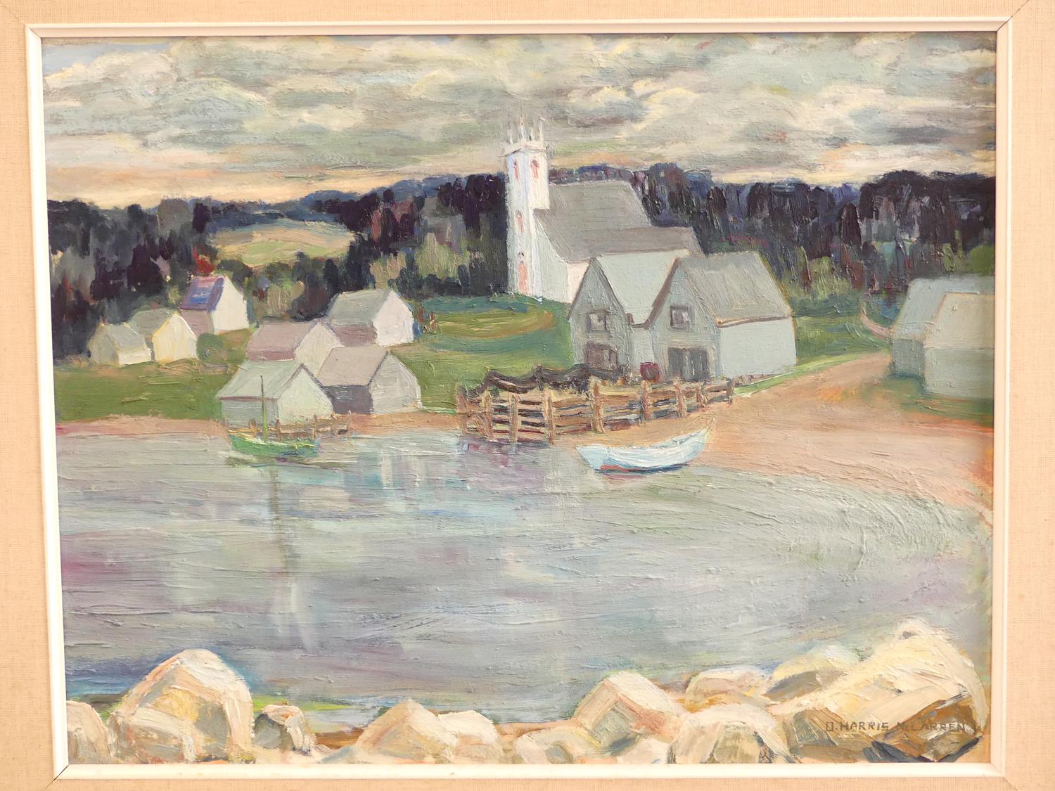 o. harris mclarren, oil on board, 16" x 20", "untitled east coast village"