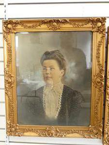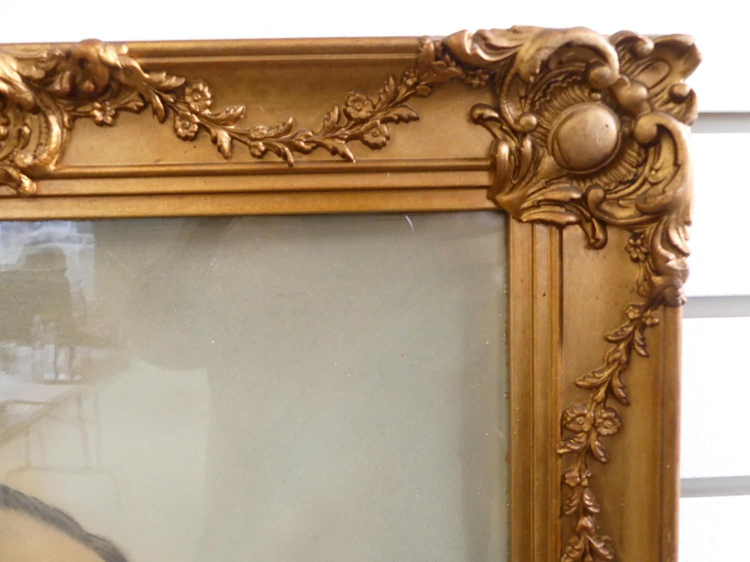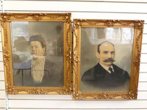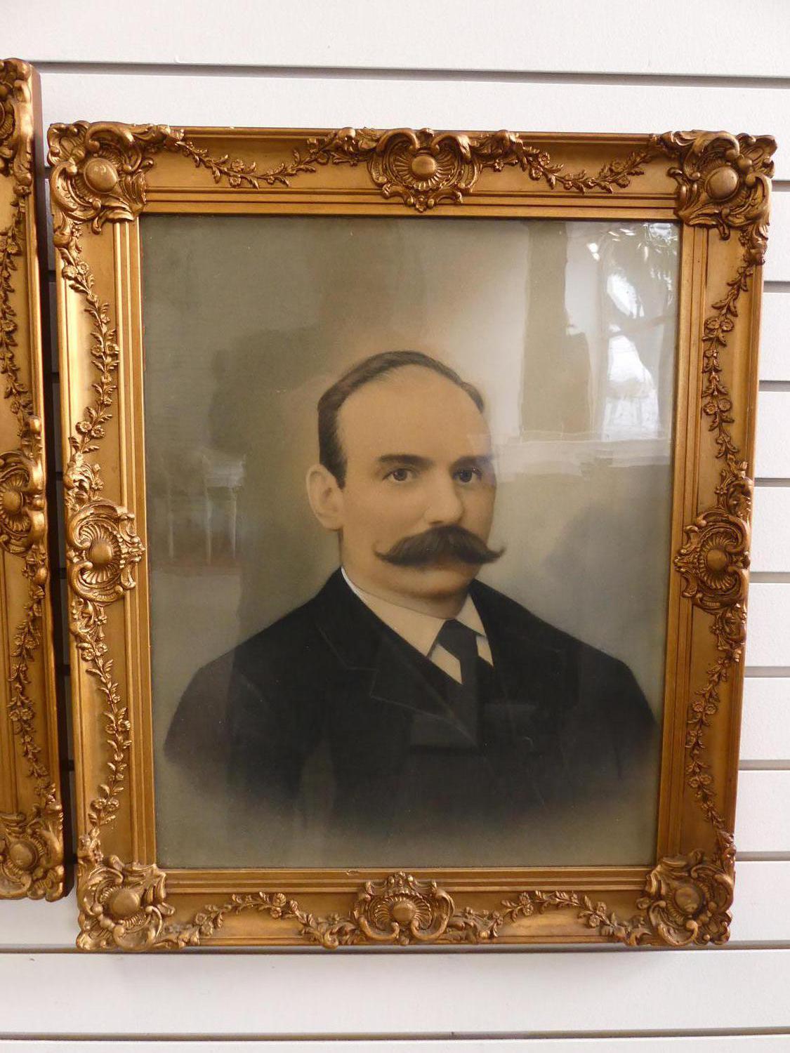 pair of antique gilt framed society portraits, overall 24" x 20"